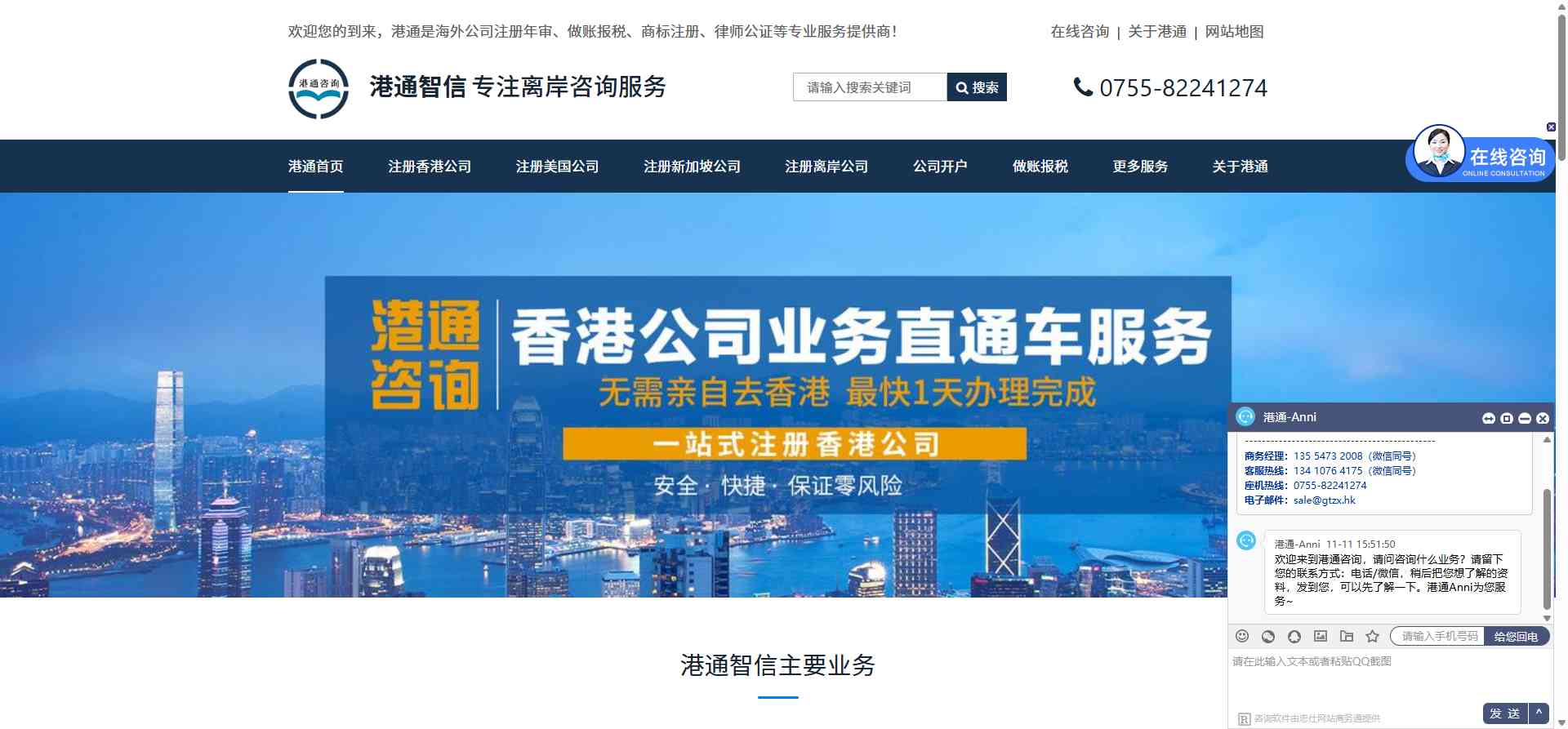 网页标题:港通智信商务 - 香港公司注册 - 美国报税年审 - 企业开户公证